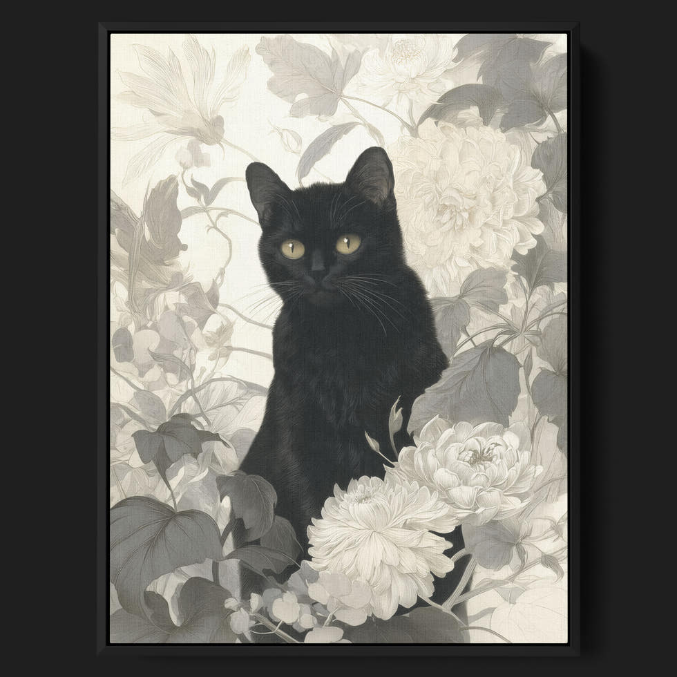 Nocturne Floral Cat Wall Art