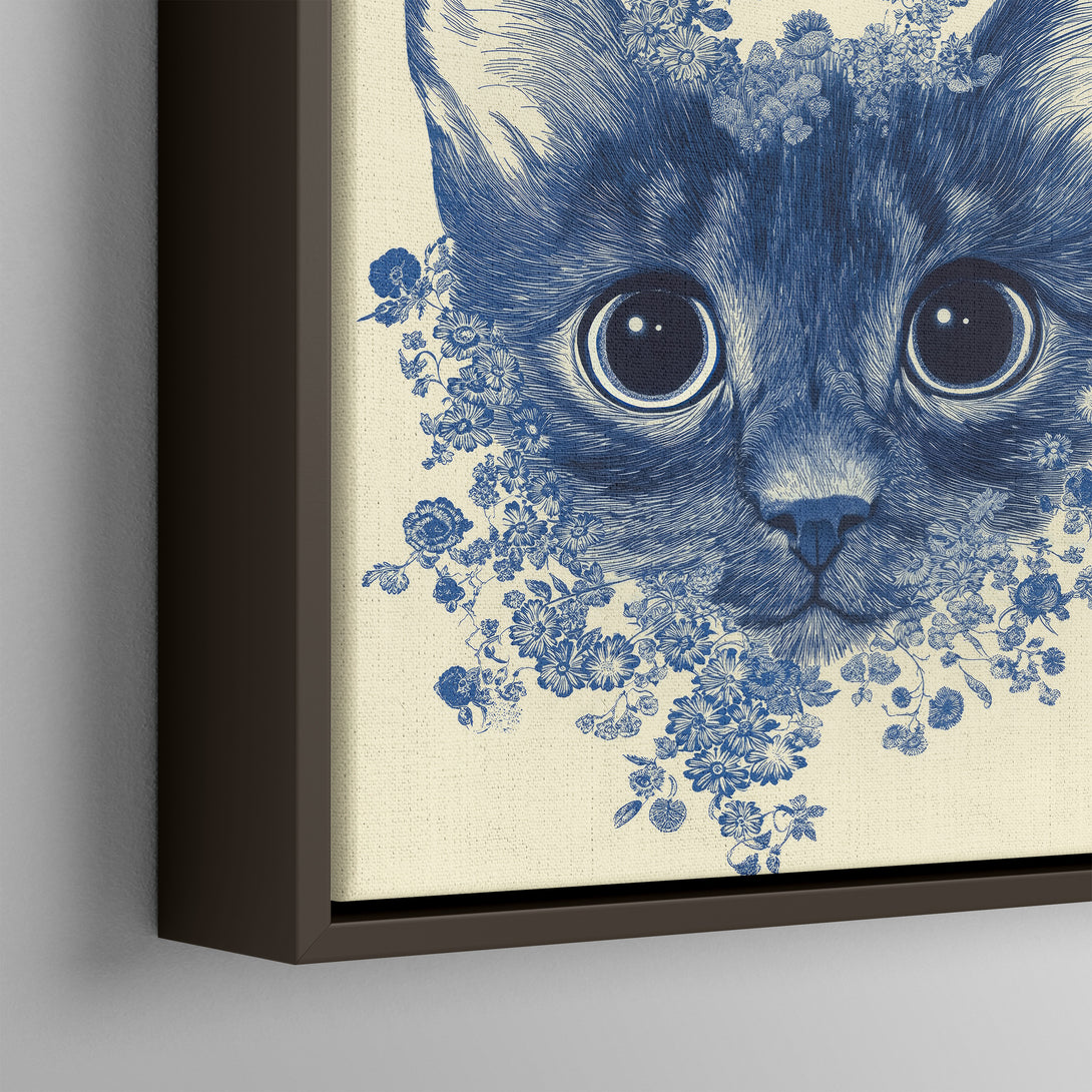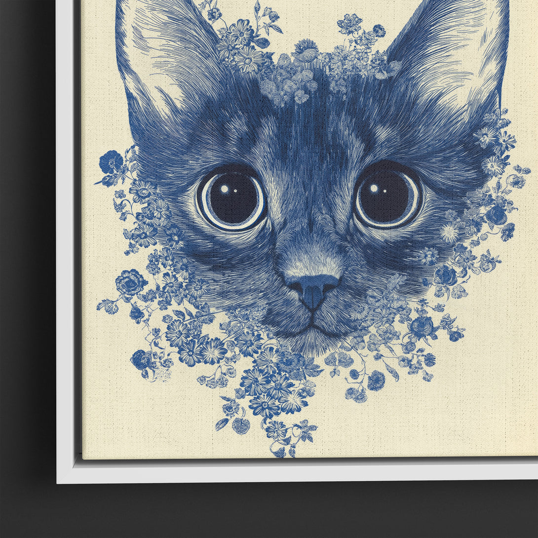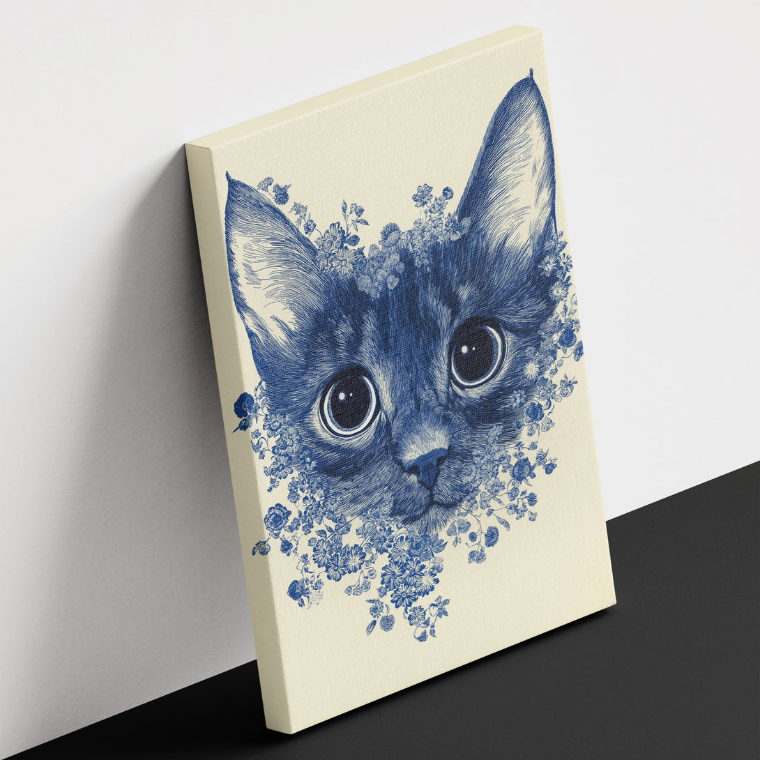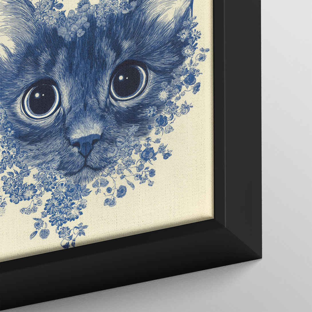 Indigo Floral Cat Wall Art