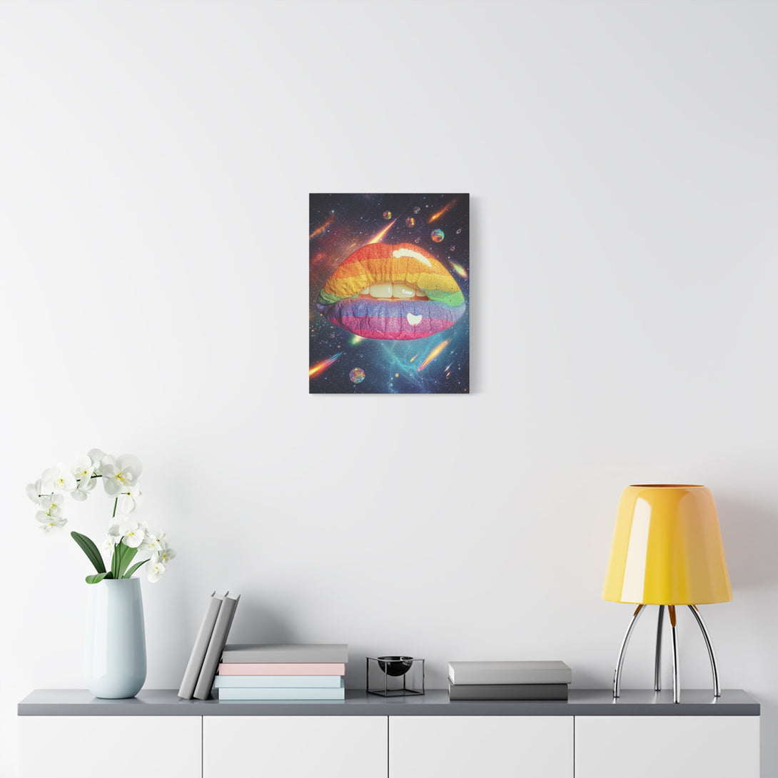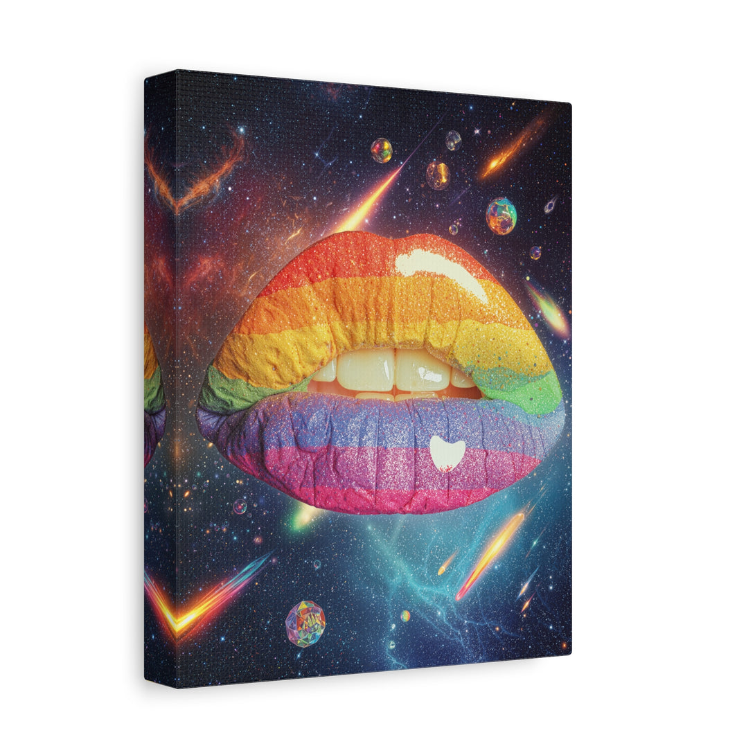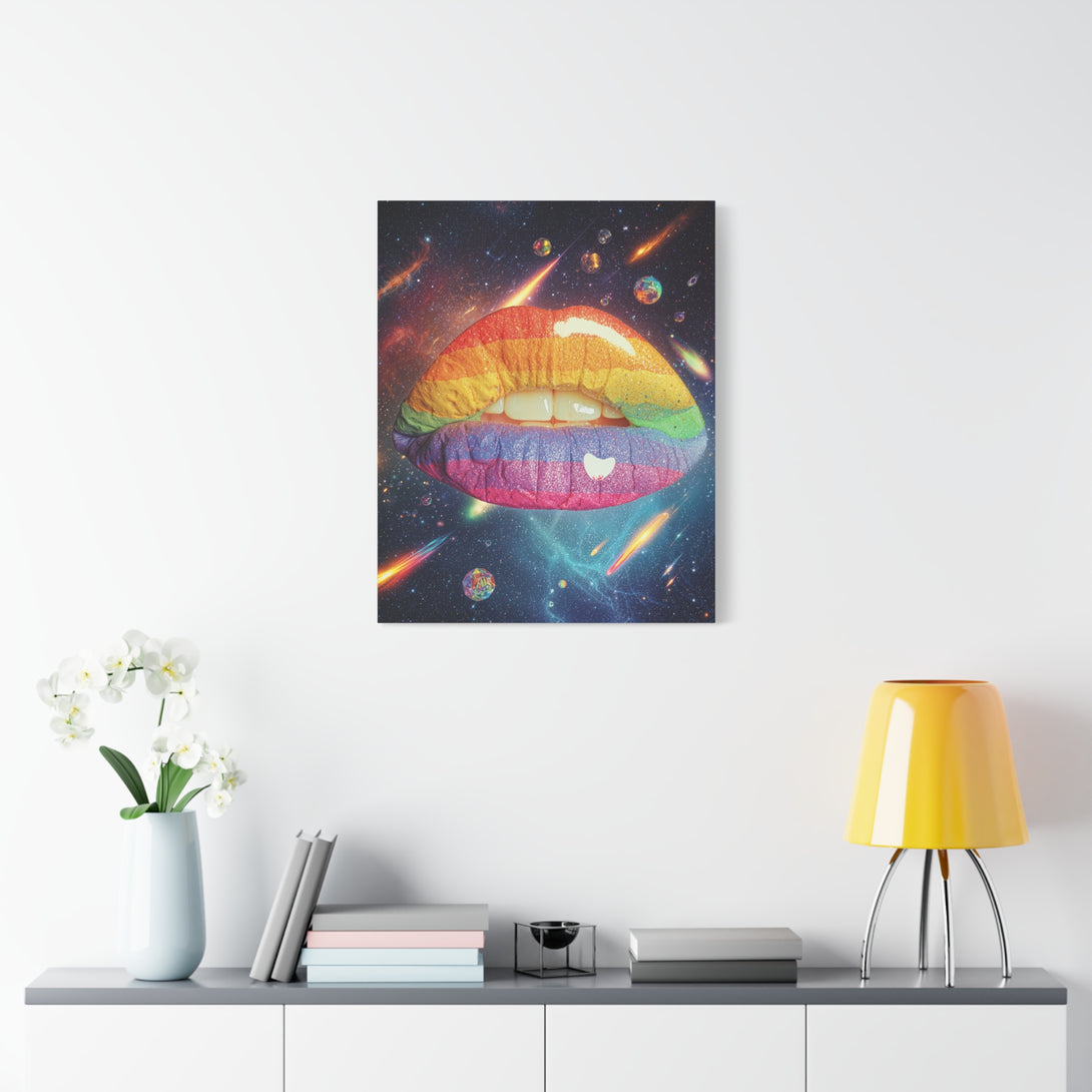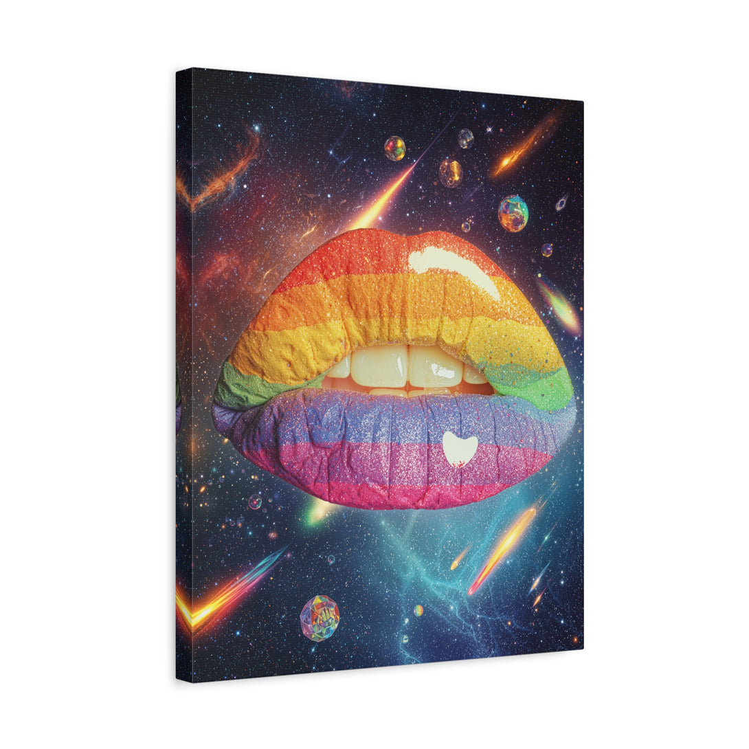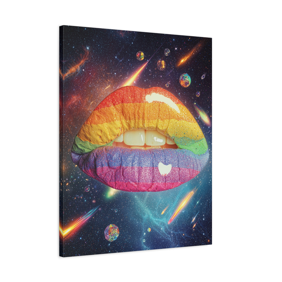 Rainbow-glitter lips drift through deep space, comets, bubbles, little planets, saying more with color than words. Loud look, quiet energy: perfect for introverts who prefer cosmic statements and minimal conversation.