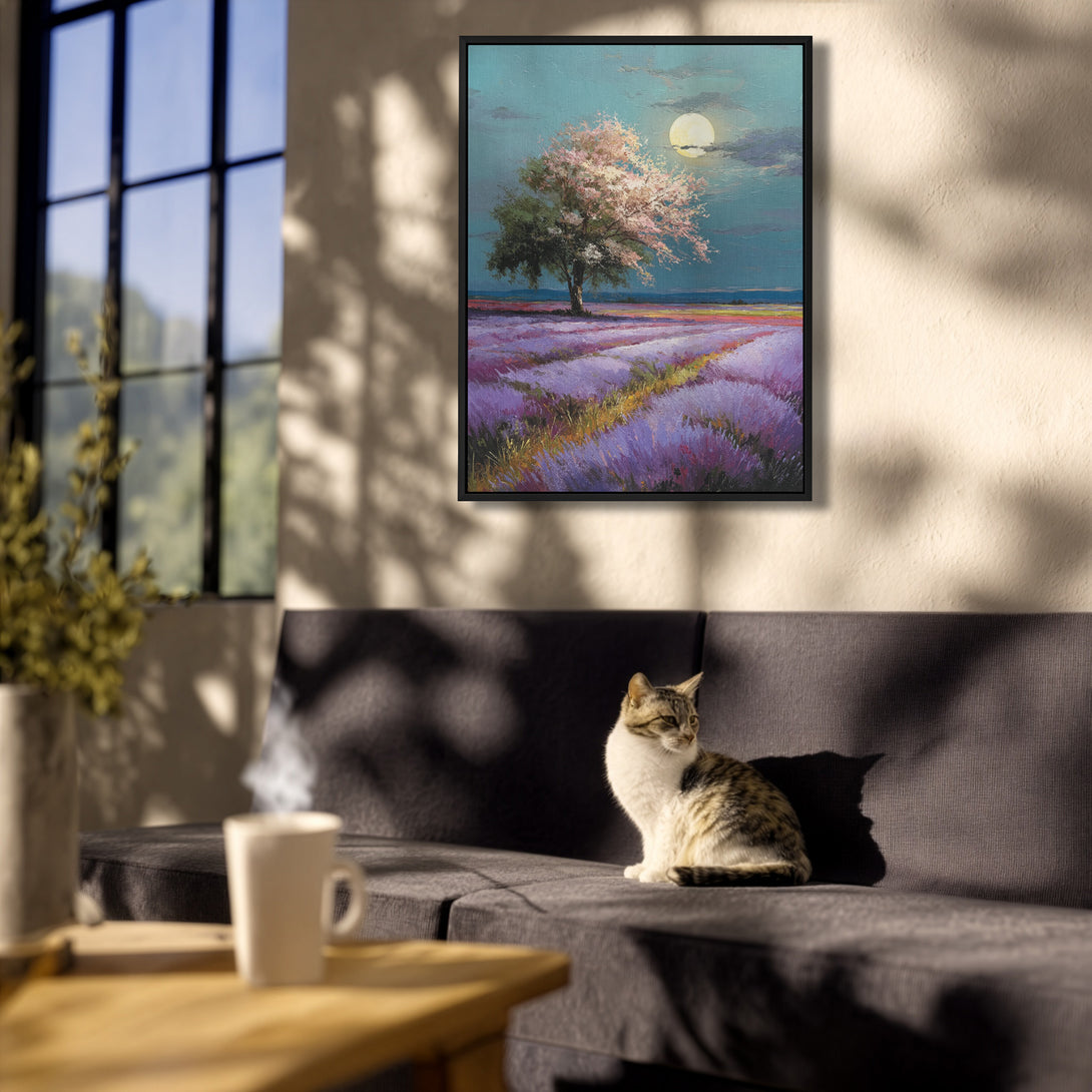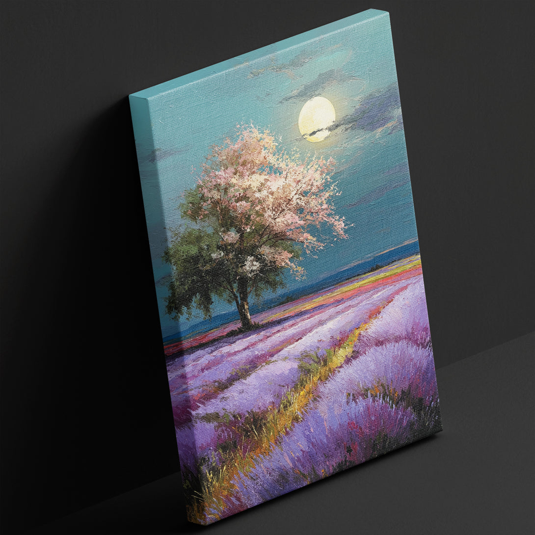 Night-calm lavender under a gentle moon, soft teal and violet that quiets a room in one glance. Limited Release.